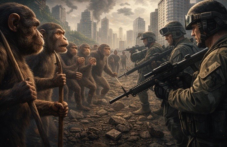 ๐ฅ Humanity would face fear, ethical dilemmas, and political tension. Governments would struggle to decide whether evolved monkeys deserve rights equal to humans.